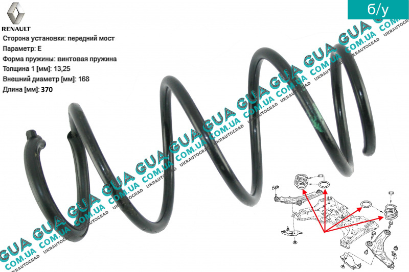Пружина передняя 4.5 витка D 13.25 мм ( зеленая, зеленая ) Renault / РЕНО LAGUNA II / ЛАГУНА 2 2.2DCI (2188 куб.см.),