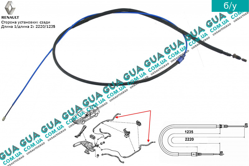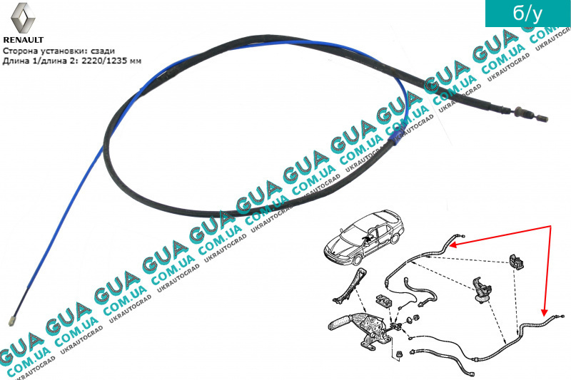 б/у Трос ручного тормоза ( левый / правый 2220 мм ) Renault / РЕНО LAGUNA II / ЛАГУНА 2 2.2DCI (2188 куб.см.),