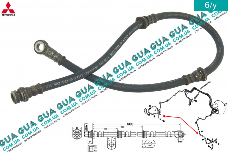 б/у Шланг / трубка переднего суппорта L 660 Mitsubishi / МИТСУБИСИ PAJERO III 2000-2006 / ПАДЖЕРО 3 00-06 2.5TD 4WD (2477 куб.см.)