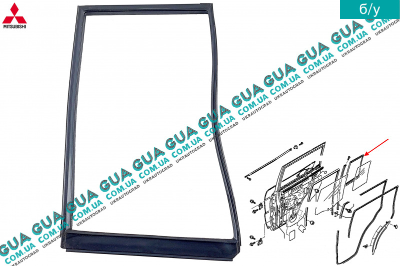б/у Уплотнитель стекла / форточки задней правой двери Mitsubishi / МИТСУБИСИ PAJERO IV 2006- / ПАДЖЕРО 4 06- 3.2DI-D (3200 куб.см.)