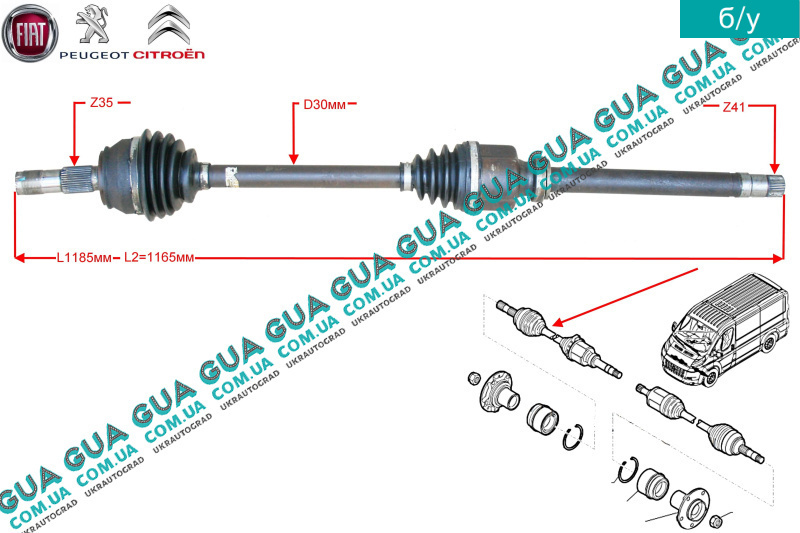 | Описание: | Шлицов со стороны КПП: 41 Шлицов со стороны колеса: 35 Резьба M33x1.5 |