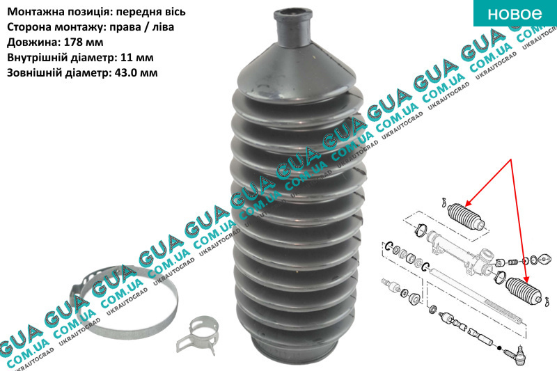 | Группы: | Рулевая система > Рулевая рейка > Пыльник рулевой рейки |