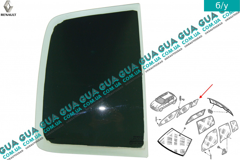 б/у Стекло двери задней правой ( форточка ) Renault / РЕНО CLIO II / КЛИО 2 1.9DTI (1870 куб.см.)