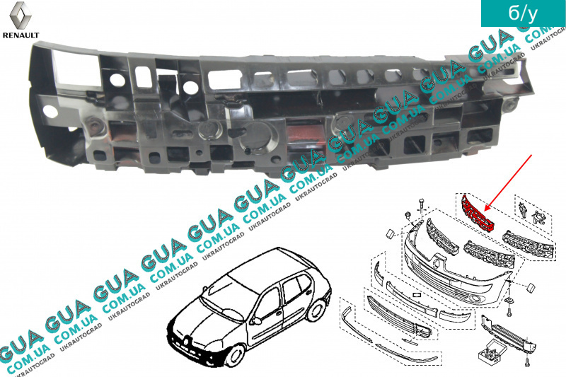 б/у Усилитель переднего бампера правая часть Renault / РЕНО CLIO II / КЛИО 2 1.9DTI (1870 куб.см.)