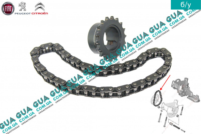 б/у Звёздочка и цепь привода масляного насоса