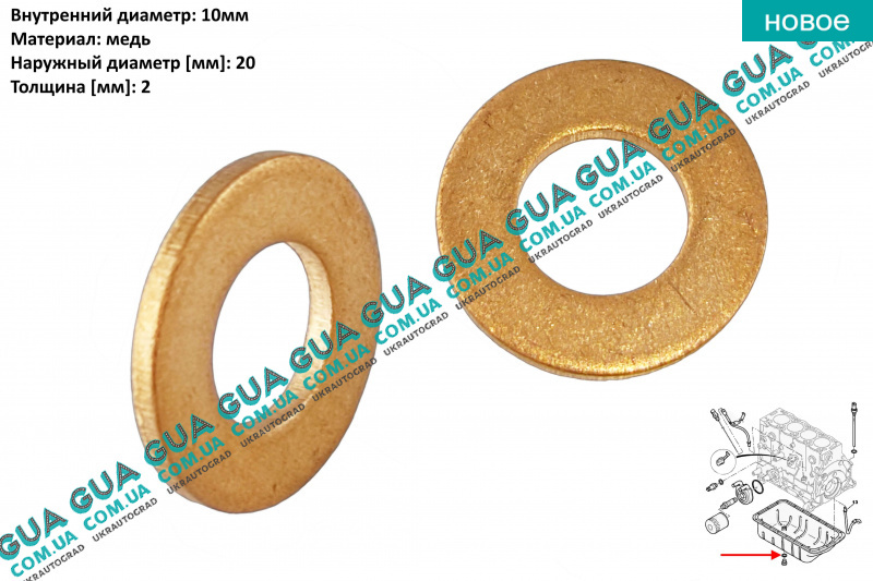 Шайба болта масляного поддона 1 шт 20x10x2 Volvo / ВОЛЬВО V70 III 1.6D (1560 куб.см.)